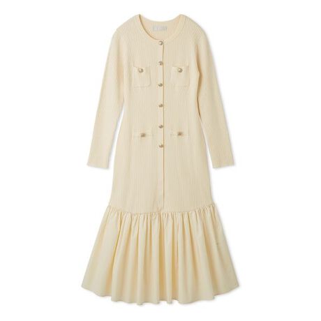 肌触りの良いニットとハリのあるタフタ素材をドッキングしたニットワンピース。