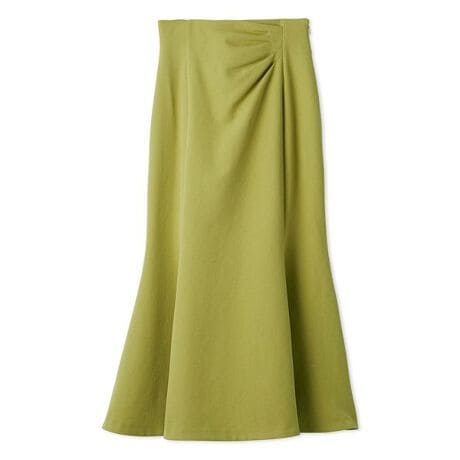 優美な曲線を描くドレープが女性らしい柔らかな印象のマーメイドスカート。フロントにドレープが生まれるようにタックを施すことで、気になる腰周りをカバー。