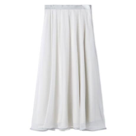 繊細な透け感をまとうシフォンジーと、ラメチュールの重なりが生み出す、奥行きのある色彩が魅力のシアータックフレアスカート。光を受けてしなやかに揺れるたびに、気持ちまで華やぐような印象的な足元を演出します。裾にはクラシカルなムードを添えるグログランストレッチテープをあしらい、さりげないアクセントに。ウエストのゴム仕様にはジグザグステッチを施し、クラフト感を添えました。シンプルなトップスとも好相性で、日常に品のある華やかさをもたらす一着です。