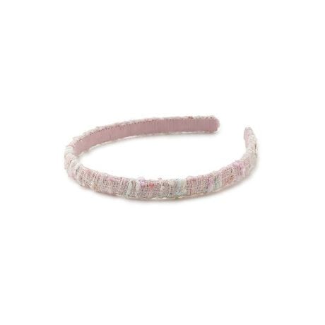 10mmほどの細幅カチューシャ。程よい存在感でお顔周りを華やかにしてくれます。あまり厚みを出さないことでコンパクトにまとまり、品よいスタイリングに。