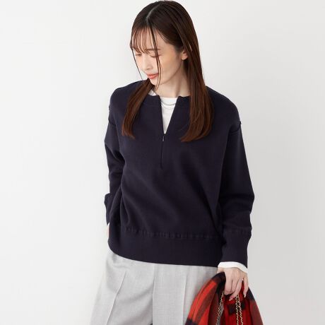 シンプルなニットにジップを施したデザインの1枚。