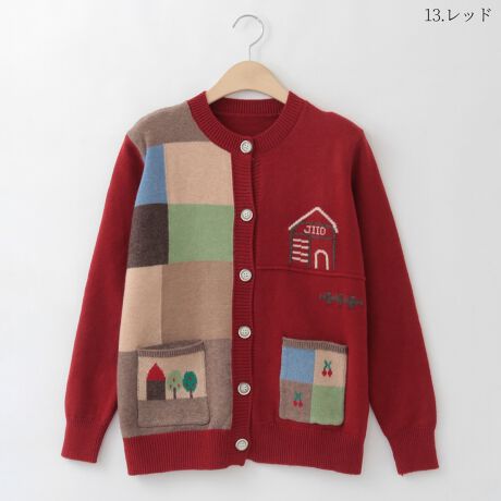 愛らしい家モチーフや刺繍風なディテールを施し、ブロッキングの配色が目を惹くキュートなお作りです。