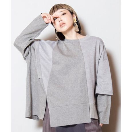 [型番:700006-063T]さり気ないリブのアクセントや袖のレイヤードで、1枚でも見劣りしないデザインカットソー。着膨れしない軽めのミニ裏毛で、スッキリとしたシルエットに。===========================透け感: なし伸縮性: あり光沢感: なし裏地: なし素材について: カジュアルな軽めのミニ裏毛===========================