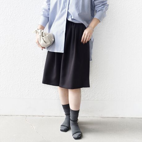 一見スカートにも見えるシルエットで、合わせるトップスによってカジュアルにもキレイ目にも着こなせて、シーンを問わずオフィスでもお使いいただける、きちんと感も兼ね備えた一着です。