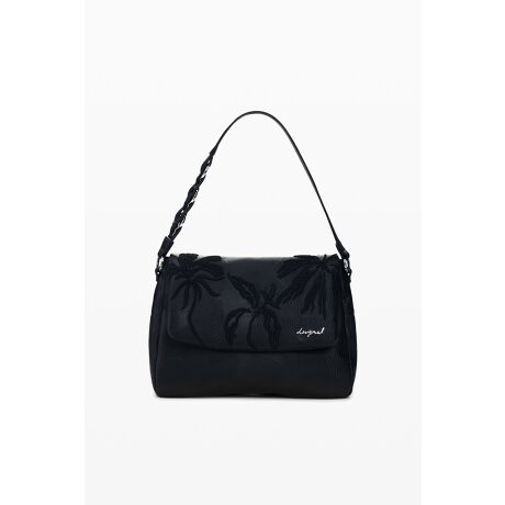 花の刺繍と取り外し可能なチャームが付いた、バッグに変換可能な中型のリュックサック