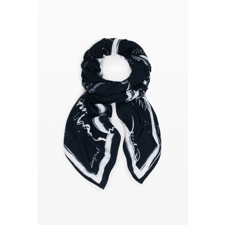 白黒のDesigualテキストのレタリングスタイルプリント付き長方形のスカーフ