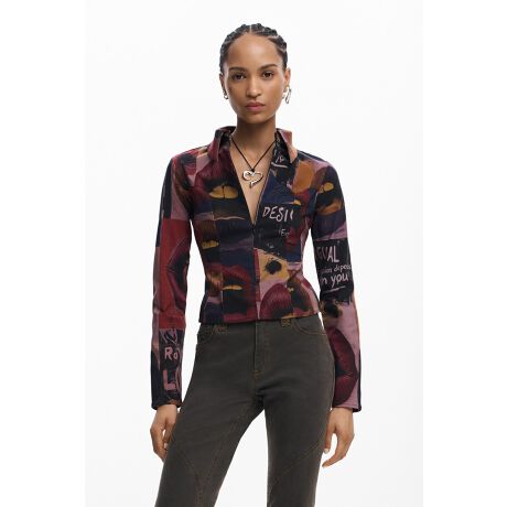 ビスコース、ポリアミド、エラスタンを混合した織物素材の長袖シャツ。クラシックな襟とボタン付きのフロント開閉。ブラウンカラーのデザインにプリントが施され、袖口は調整可能な仕上げ。