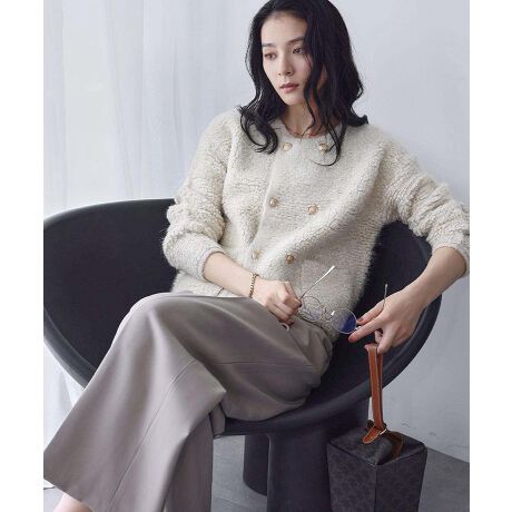 ふんわりとふくらみのある糸をループ状に編んだ立体感のあるカーディガン。