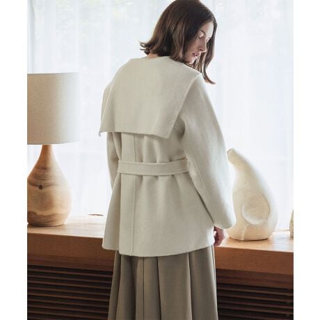 【ウール70%】セーラーカラー ウールコート 冬 ミドル丈 ベルト付き ハーフコート