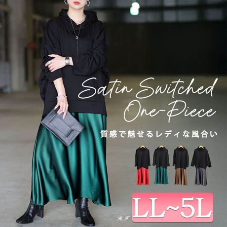 【大きいサイズ】 パーカードッキングサテンワンピース 大きいサイズ レディース ワンピース ロング