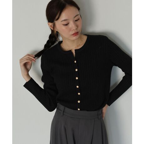 ゴールドボタンケーブルクルーカーディガン