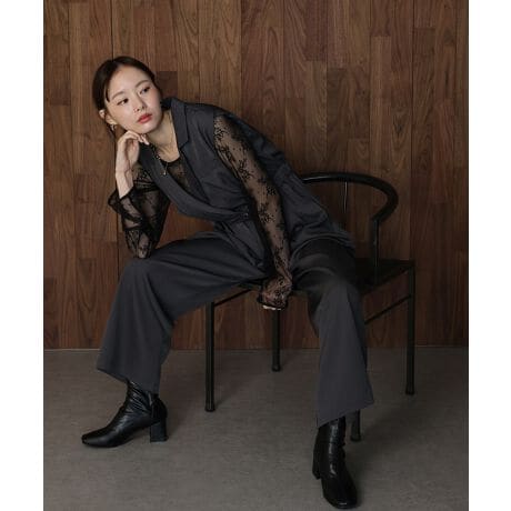 マニッシュなテーラードの襟付きデザインできちんと感を演出。
