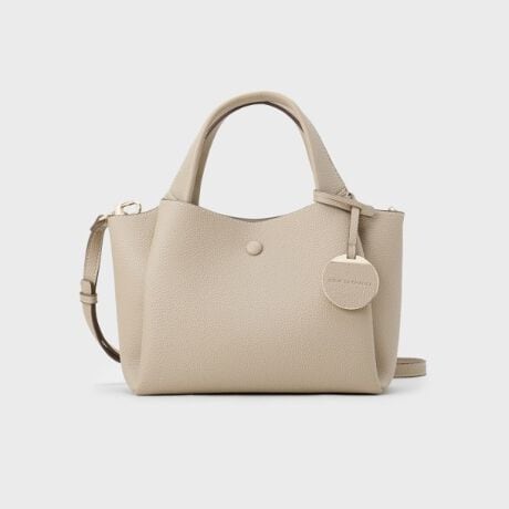 カジュアルに持ちたいときは付属のショルダーをつけるとパンツスタイルにも合わせやすく、いろんな顔を選出できるバッグです。