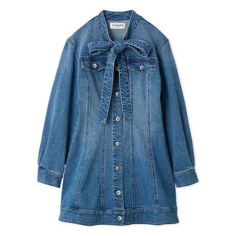 <b>【デニムで仕立てたボウタイミニワンピース】</b>