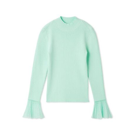 程よくシャリ感のある糸を使用し、肌触りの良さと上品な風合いを兼ね備えたリブニット。袖口にはフラワーモチーフの編地で仕立てたシアースリーブをドッキングし、さりげない透け感が女性らしい抜け感を演出します。シンプルなシルエットながらも、袖のデザインがアクセントとなり、一枚で着てもレイヤードしても映える万能アイテム。カラー展開はデイリーに取り入れやすい全4色をご用意しました。