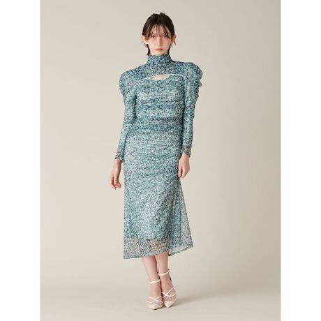 <b>【抽象フラワープリントが映えるチュールドレス】</b>
