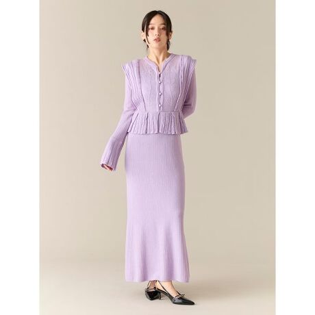 「LILY BROWN」のシグネチャーアイテムとして人気を誇るスイッチングレースシリーズが、今季はニットワンピースとしてアップデート。繊細な編み柄を切り替えることで、立体感と奥行きのある表情を生み出し、ヴィンテージムード漂う佇まいに仕上げました。メリハリのあるシルエットがスタイルを美しく見せ、1枚で華やかな存在感を放ちます。インナーキャミソールがセットになっており、透け感を気にせず着用できるのも嬉しいポイントです。