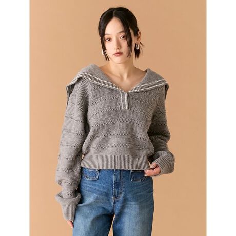 <b>【クロシェ編みが映えるセーラーニット】</b>