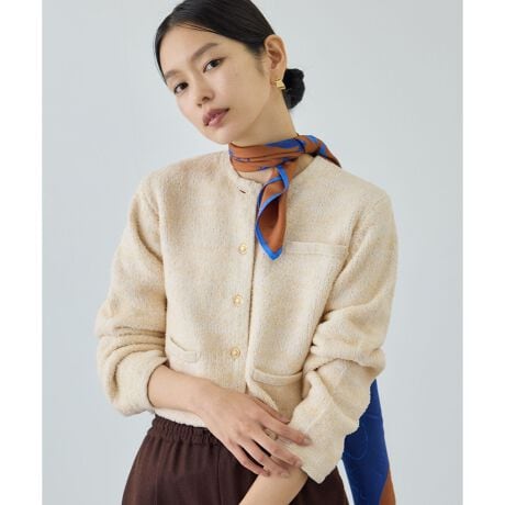 季節の変わり目に活躍するショート丈のクルーネックカーディガン。軽く羽織るだけでバランスよく決まるコンパクトなシルエットが魅力です。ふんわりモフモフとした柔らかい素材が特徴で、肌に触れたときの心地よさが抜群。軽量ながら暖かく、長時間着ても疲れない快適な着心地です。ジャケットの代わりとしても快適に着られ、通勤やお仕事にぴったりの1着です。