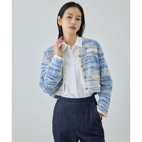 季節の変わり目に活躍するショート丈のクルーネックカーディガン。軽く羽織るだけでバランスよく決まるコンパクトなシルエットが魅力です。ふんわりモフモフとした柔らかい素材が特徴で、肌に触れたときの心地よさが抜群。軽量ながら暖かく、長時間着ても疲れない快適な着心地です。ジャケットの代わりとしても快適に着られ、通勤やお仕事にぴったりの1着です。