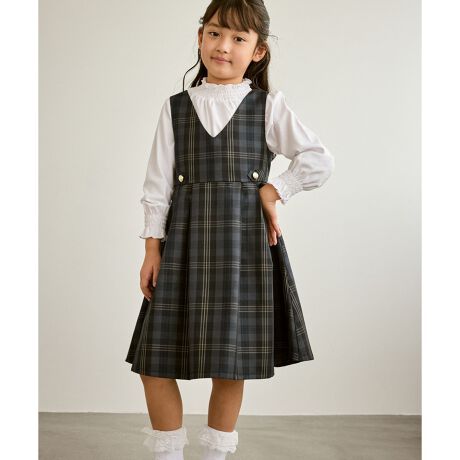 ・セレモニーにもカジュアルにも使えるチェック柄のジャンパースカート。