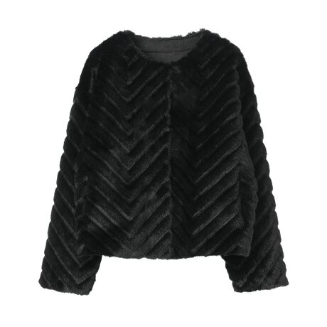 ミンク調の優雅な合成繊維と、上品なプリントスエードのリバーシブル仕様のジャケットです。気分やシーンに合わせて、異なる表情をお楽しみいただけます。パーティーなどの華やかな場から、日常使いまで幅広くご活用いただけ、一着でリッチにもカジュアルにも着回せる汎用性の高さが魅力です。ノーカラーの丸首デザインが、洗練された大人の女性のエレガントな装いを引き立てます。セレモニーにもふさわしい気品あふれる一枚です。