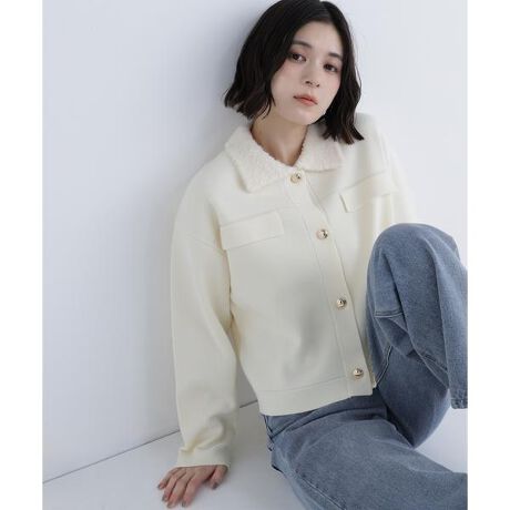 襟元にふんわりとしたループシャギーを使用したニットジャケット。身頃はカジュアルでキレイ見えするミラノリブ素材を使用しています。編み柄で切り替えポイントを入れており、よりジャケット見えする雰囲気に。品のあるゴールドカラーボタンが高見えするスタイリングを叶えてくれます。<素材>襟元はふんわりとしたループシャギー、身頃はすっきりとしたウール混のミラノリブニットです。<詳細>仕様・前ボタン裏地・なし透け感・なし / 光沢・なし / 伸縮性・あり 生地の厚さ・厚手※モデルの着用画像の場合、光の当たり具合により、実際の色味と異なって見えることがございます。色味は、商品単体の画像をご参照ください。