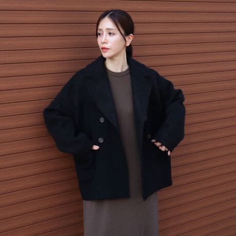 [型番:159105]高品質、高性能が特徴の尾州産のウール地を使用しています。肉感がありながらもふわっと軽いコート地のモッサと、毛並みのあるシャギーを組み合わせたコートです。トレンドのPコートも他にはない素材感で、より鮮度アップさせています。※商品画像は光の当たり具合などにより実際の色味と異なって見える場合があります。