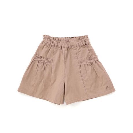 ウエストだけでなくサイドの切り替え部分にもギャザーを寄せたキュロットタイプのシルエット。