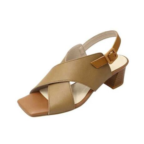 クロスした幅広のレザーストラップが足を優しくホールドしつつ、トレンド感もプラス。