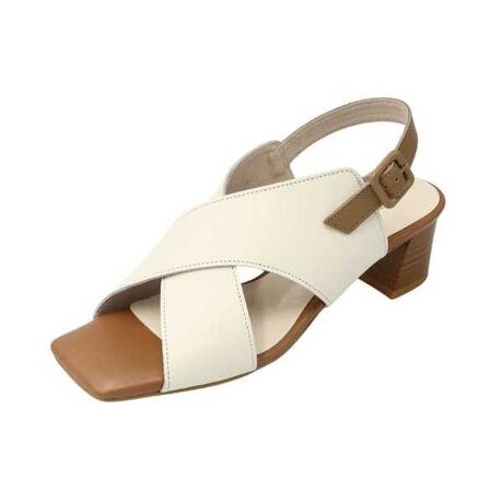 クロスした幅広のレザーストラップが足を優しくホールドしつつ、トレンド感もプラス。