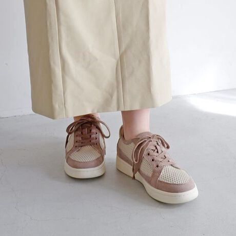 メッシュ素材が涼しげな印象のカジュアルスニーカー。トレンドのメッシュ×スエードの異素材コンビで旬に仕上げました。
