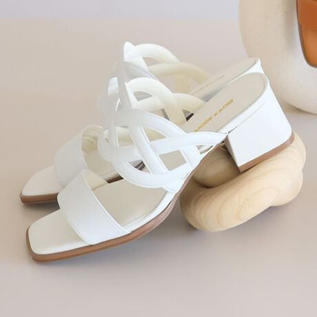 立体感のあるカットワークが目を引く、カットワークデザインのミュールサンダル。