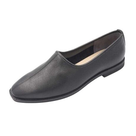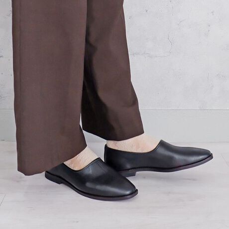 アッパーには柔らかなレザーを使用し、足に優しくフィット。履き口が浅めのスリッポン仕様で、脱ぎ履きもスムーズです。