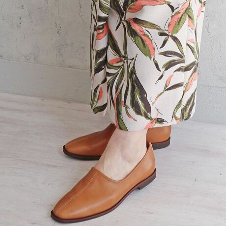 アッパーには柔らかなレザーを使用し、足に優しくフィット。履き口が浅めのスリッポン仕様で、脱ぎ履きもスムーズです。