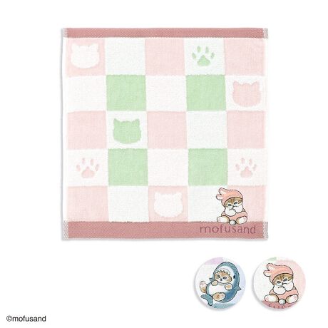 タオルの端に可愛くお座りしているサメにゃんとうさにゃんの刺繍がタオルの可愛さを引き立てています。
