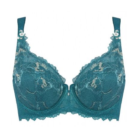 バストを包みこむカップと背中にストレッチレースを使用し、ストラップの付け根にモチーフを使用したプレミアムらしい上品なデザインです。