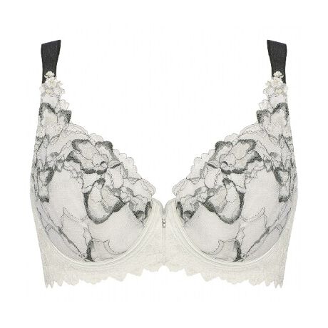 バストを包みこむカップと背中にストレッチレースを使用し、ストラップの付け根にモチーフを使用したプレミアムらしい上品なデザインです。