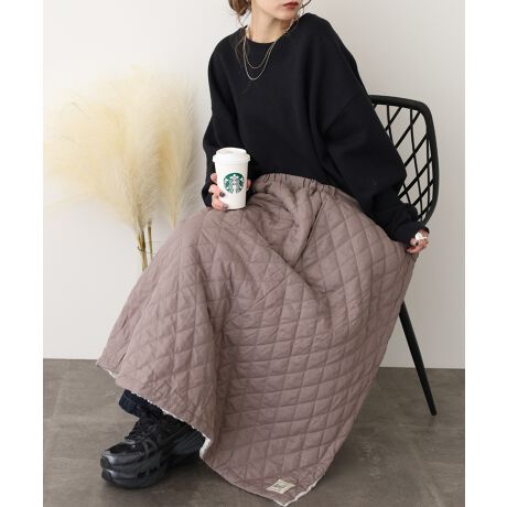 ・軽くて暖かいキルト×裏ボア仕様のロング巻きスカート。