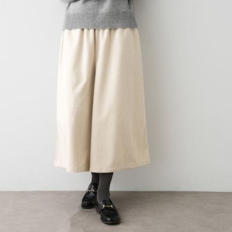 ギャザースカート見えする、暖か素材のキュロットパンツ。