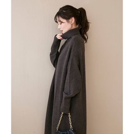 体のラインを拾いにくく、リラックス感のあるサイジングに仕上げたニットワンピ