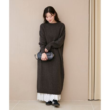 体のラインを拾いにくく、リラックス感のあるサイジングに仕上げたニットワンピ