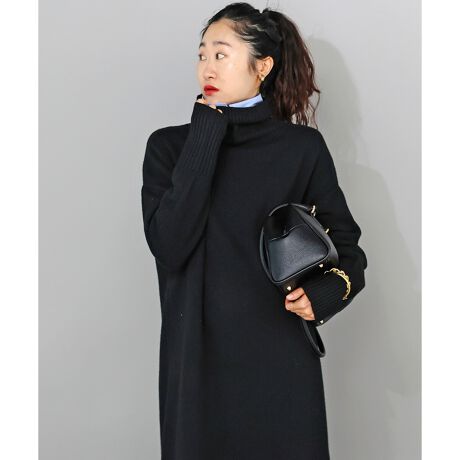 体のラインを拾いにくく、リラックス感のあるサイジングに仕上げたニットワンピ
