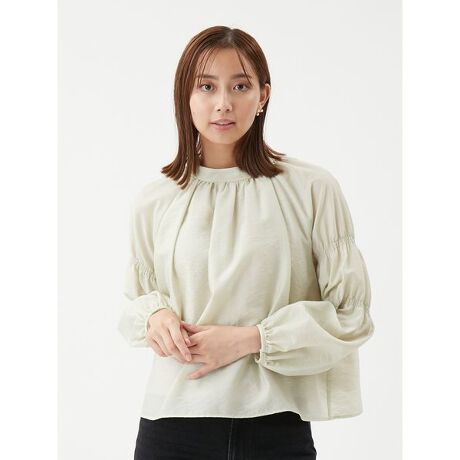 身頃は薄い裏地を付けシアー感を軽減。袖には2ヶ所にシャーリングを入れて、こなれた印象に仕上げています。