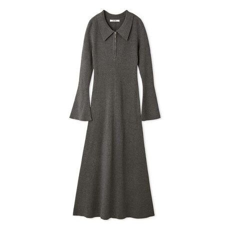 SNIDELオリジナルではこれまであまり登場していなかった、スキッパーデザインを取り入れたロング丈のニットワンピースが登場。アクティブさとエレガントさをドッキングしたシンプルなデザインで、もちもちとしたしなやかなニット生地を使用し、着心地良く仕上げました。シルエットは、ヒップラインを追い過ぎないAライン風のフレアライン。フロントにはデコルテを美しく演出し、シャープな印象を与えるハーフジップを加えました。ウエスト部分とスカートのセンターにはラインを入れて、スタイルアップ効果も抜群に。袖はベルスリーブで深めのスリットを入れて抜け感をプラスしました。