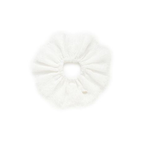 3色展開で、それぞれ異なる素材でお作りしたロマンティックなレースシュシュです。ボリューム感のあるアイテムで、シンプルなローポニーやお団子ヘアにプラスするだけで顔まわりが華やぎます。ブレスレットにしても可愛いです。ホワイトは花柄刺繍を施したチュールレース生地で、裾にカットフリンジを施しました。アイボリーは小花柄刺繍入りチュールレース生地で、スカラップ状の縁取りが愛らしいデザインです。ブルーは立体花柄模様を施した柔らかなジャガード生地を使用しました。ブルーはフラワーカットジャガードスカート(SWFS261046 )と同素材を使用しています。サイドにはSNIDELロゴを入れたオーバルメタルプレートを添えて、上品に仕上げました。プレゼントにもおすすめのアイテムです。