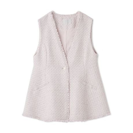 ウエストからふんわりと広がるペプラムシルエットが大人上品なツイードジレ。