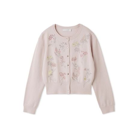 水仙やポピーなど、10種類の花々を散りばめたカラフルで目を引くオリジナルの花柄を、カーディガンに刺繍して表現しました。