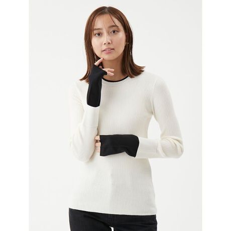 <b>【一枚でレイヤードしている風の、バイカラーデザイン。シンプルな中に遊びが効いた、上質リブニット】</b>