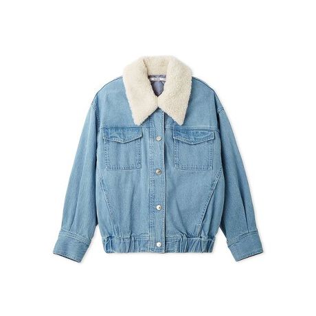 ホワイトのボア襟のデニム素材のホワイト、ホワイトのボア襟の合皮素材のブラック、ホワイトのボア襟のウォッシュ加工を加えたデニム素材のライトブルーの3色展開です。ライナーは取り外しが可能で、気温に合わせてご調節いただけます。